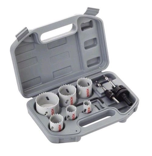 - Coffret en plastique rigide de scies trépans universels à visser Bi-métal comprenant 9 pièces :
