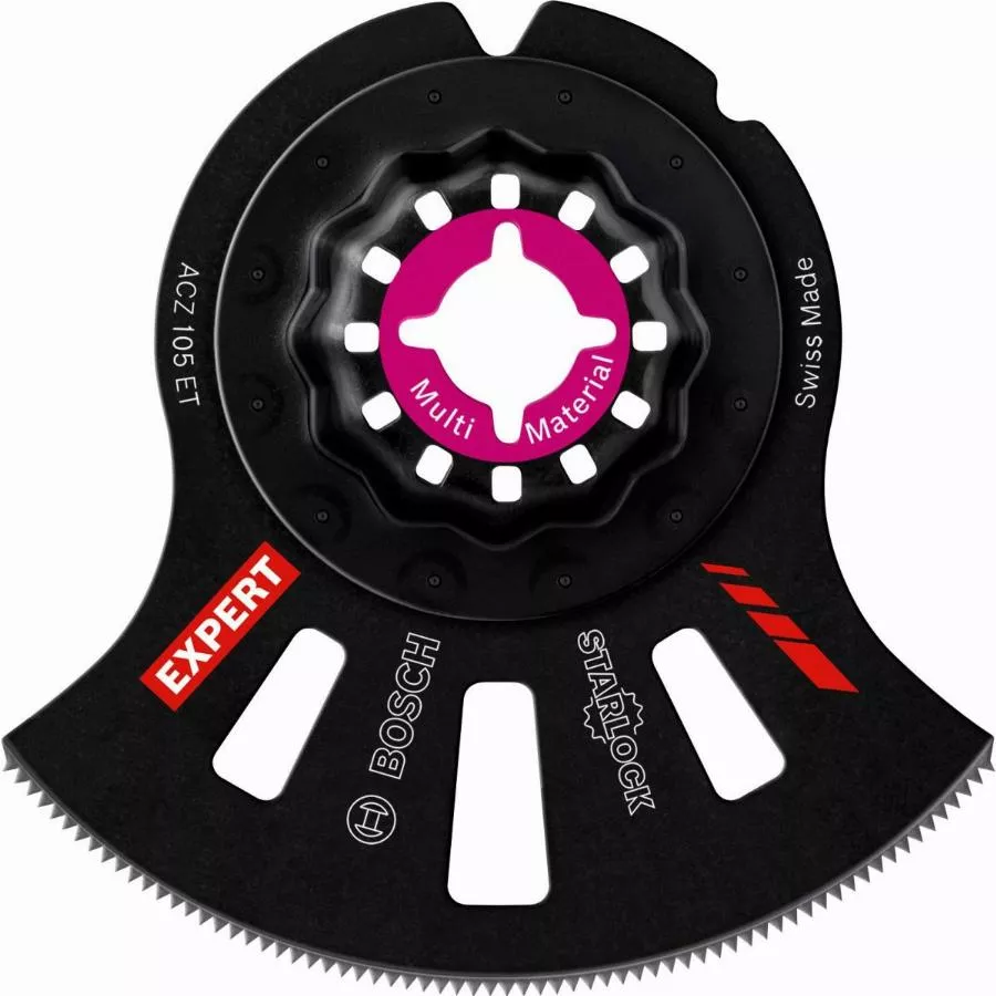 - Avec son corps large et la grande courbure de ses dents en carbure tranchantes, la lame Expert MultiMaterial Segment offre à la fois une grande précision et de la stabilité, combinées à l’extrême durabilité conférée par Bosch Carbide Technology (technologie carbure). Sa denture progressive extrêmement résistante, obtenue grâce à une expertise de fabrication avancée, coupe les matériaux les plus durs et les plus abrasifs. Support Starlock pour un transfert de puissance maximal et un changement de lame facile en 3 secondes.
