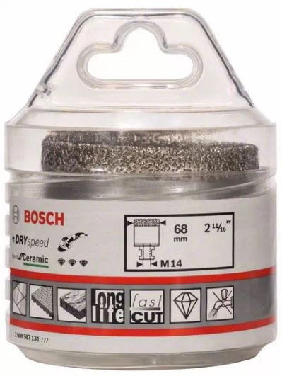 - La scie trépan diamantée à sec Dry Speed offre une grande durée de vie pour le perçage à sec dans la céramique dure.
